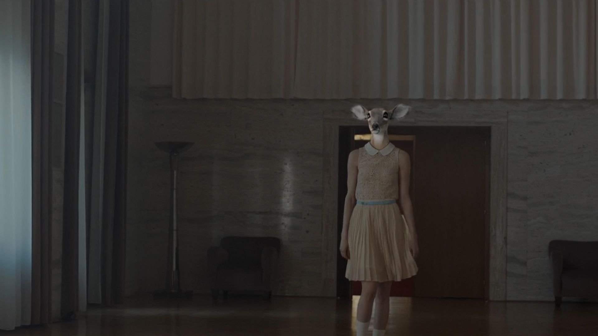 We replaced the face of the beautiful woman with a 3D model of a deer, which means that we first had to faithfully model the deer's head. Then we performed the latter movements, allowing us to position the head appropriately on the woman's body and according to her movement.